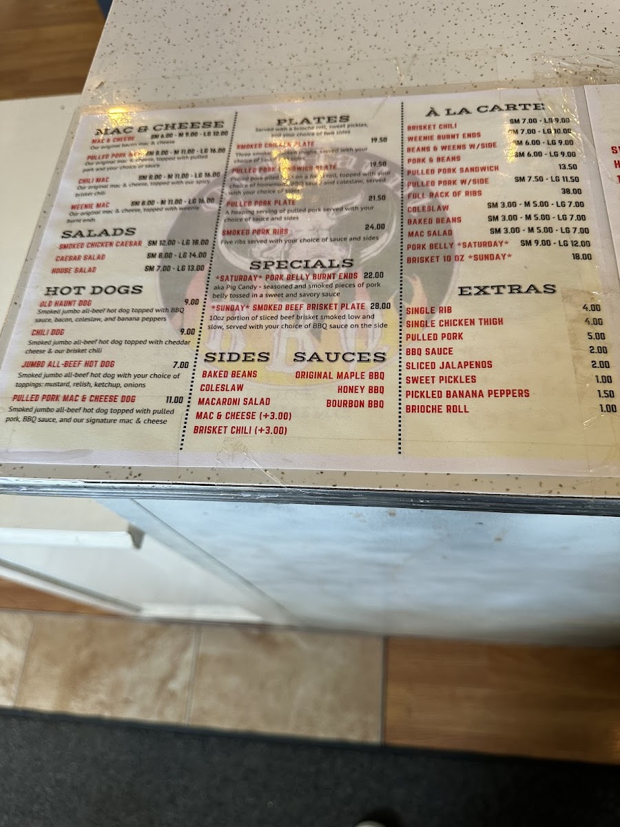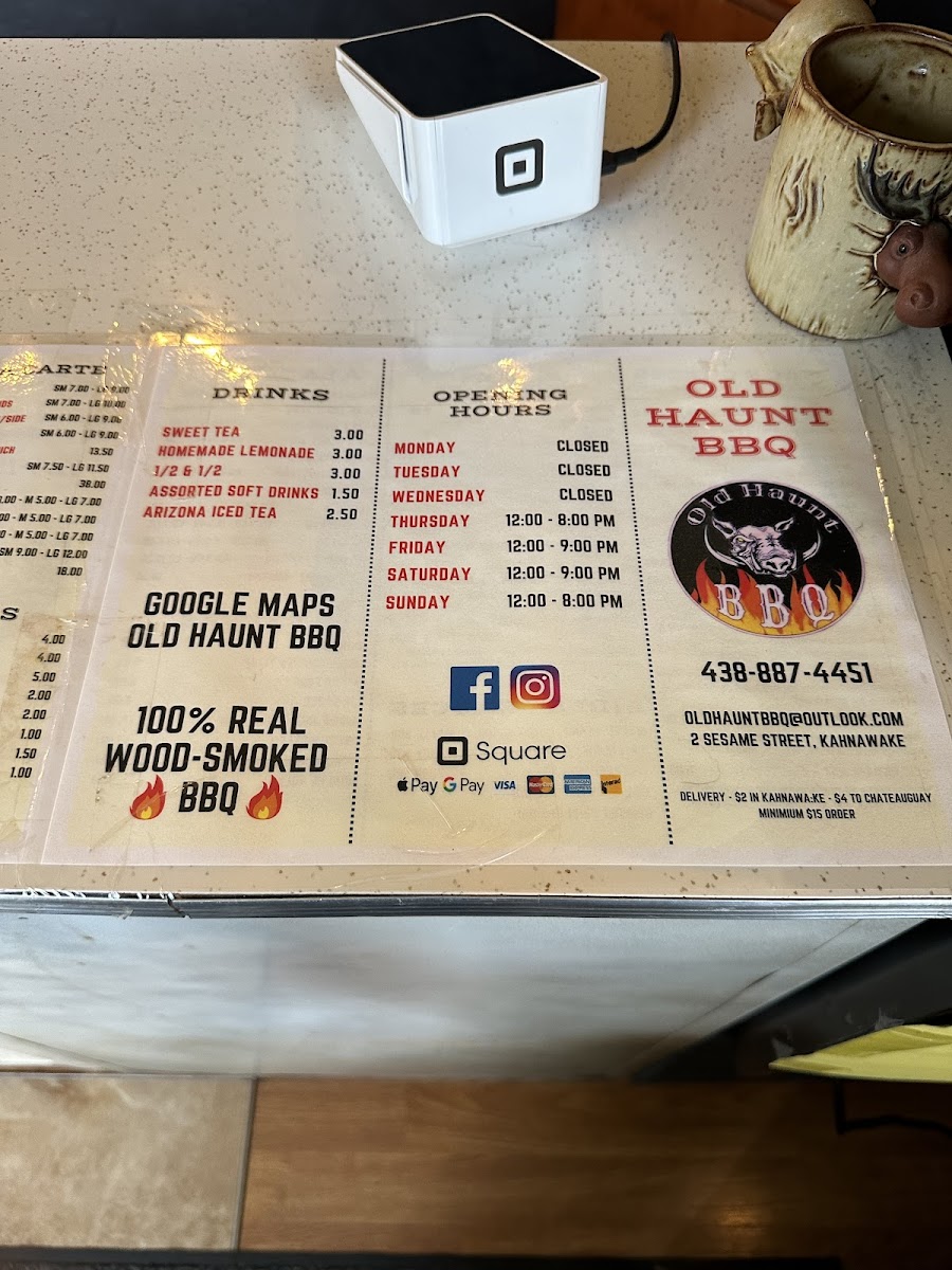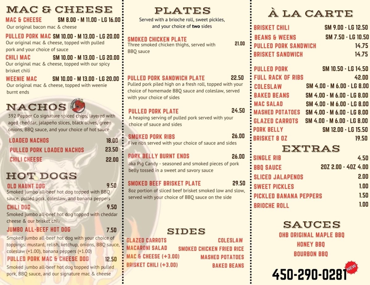 Old Haunt BBQ, nestled in Kahnawake, Quebec, offers a rich barbecue experience where smoked meats take center stage. The menu highlights tender, fall-off-the-bone ribs, juicy pulled pork, and perfectly smoked sausages that leave a lasting impression. Their plates, like the Smoked Chicken and Pulled Pork Sandwich, deliver hearty, flavorful servings that balance smoky depth with comforting sides. Speaking of sides, the creamy Mac & Cheese stands out, with variations like Pulled Pork Mac and Chili Mac adding vibrant layers to the meal.